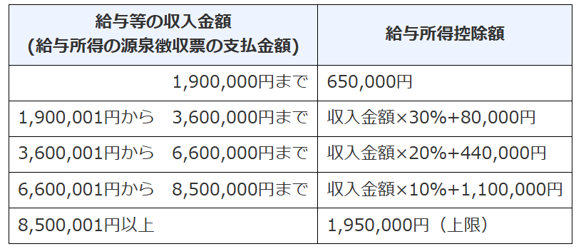 ※1 令和7年分の給与所得控除額は、下表のとおりです。なお、令和8年度税制改正の大綱では、この給与所得控除額についても、一部見直し(引き上げ)を行うこととされています。
